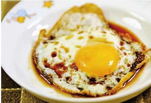 做法:1.雞蛋炸成荷包蛋,放入盤中。