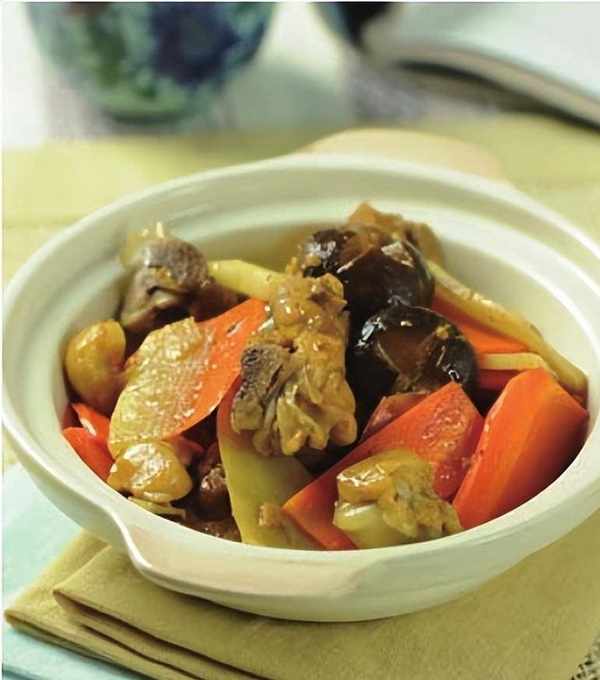 原料:山藥 100 克,香菇 5 朵,胡蘿卜 1 根(約 200 克),雞腿 1 個(約 150 克)。