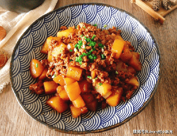 準備一塊有肥有瘦的豬肉,去皮洗凈,切成肉末,嫌麻煩用料理機打也可以。