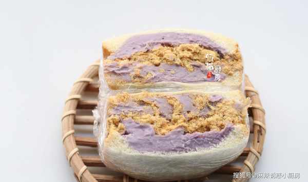 紫薯芋泥這個神仙口味的組合風靡瞭奶茶店、面包店,自己在傢用一個200克的紫薯和200克芋頭,蒸熟後壓成紫薯芋泥,鋪在吐司上,再準備一些現成的肉松即可。