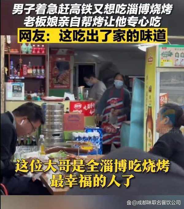 4月9日份在山東淄博,這個男人急著趕高鐵,還想去淄博燒烤,點瞭好多東西,老板娘擔心他沒時間燒烤,就自己幫忙燒烤讓他集中精力去吃,網友:這樣才能吃出傢的滋味!