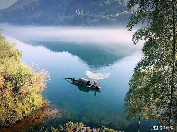霧氣升騰的江面迷蒙得恍如仙境,漁人擼槳劃舟,到江中揮手將漁網往外撒出,一派祥和的漁牧之景,這裡就是郴州小東江。
