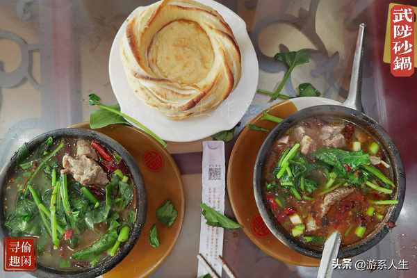 素砂鍋的食材種類還有那麼幾樣,而葷砂鍋的食材就兩樣——肉(羊肉、排骨之類)和時令葉菜(菠菜或小白菜)!更何況時令葉菜還是需要自己動手往砂鍋裡加的配菜!主食嘛,也隻有米飯和燒餅兩種。大老遠興沖沖地跑來,原來就這兩樣?!別掃興,這正是色香味加持下,武陟砂鍋“寓簡於繁”“簡約卻不簡單”的自信體現!