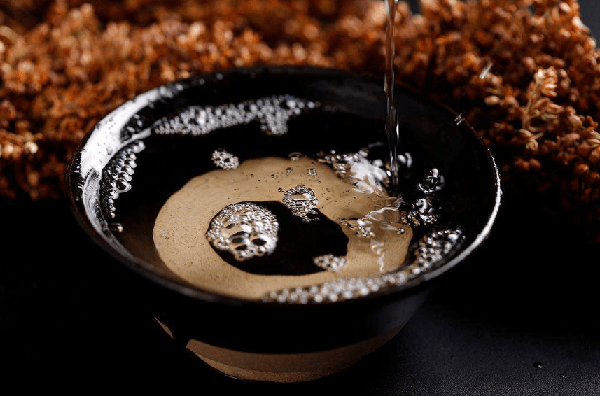 經過時間的沉淀,它的酒微黃透明,酒香濃鬱飽滿。醬味和花果香混合後,聞起來很舒服。
