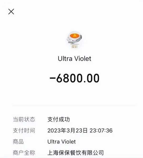 3月23日,王先生單人就餐花費6800元(圖源:受訪者)