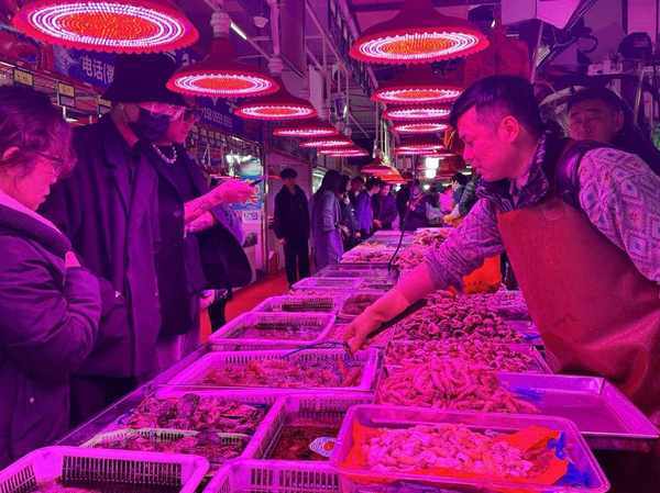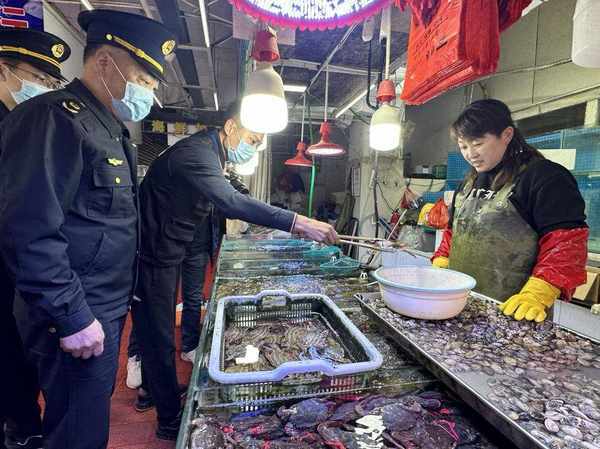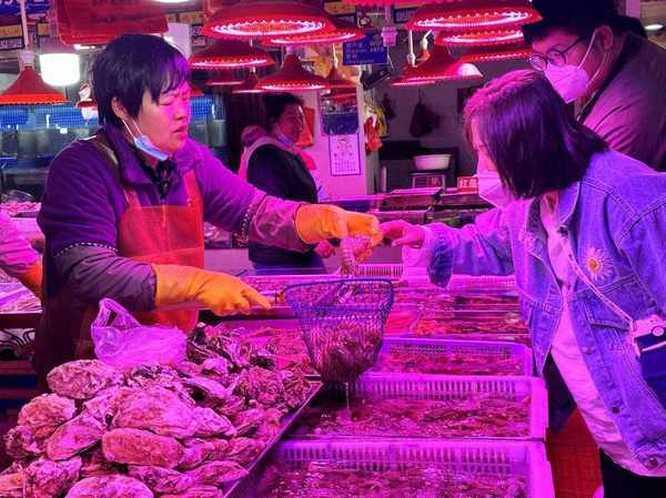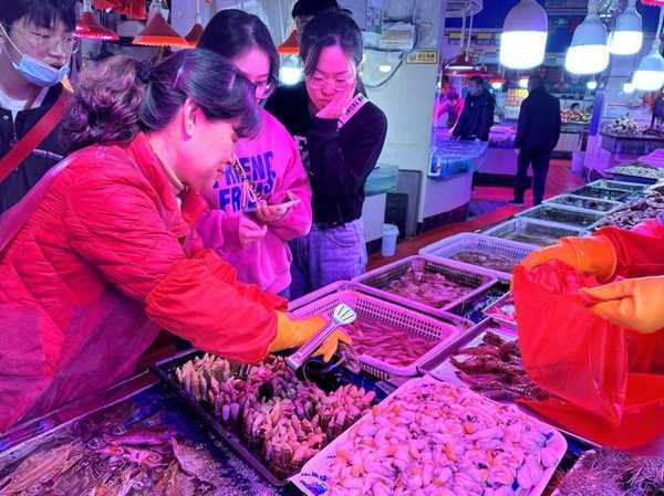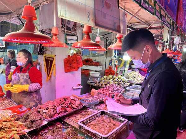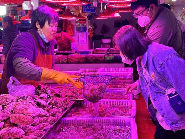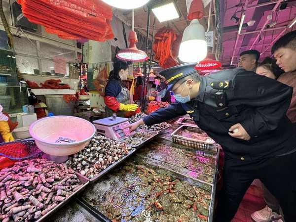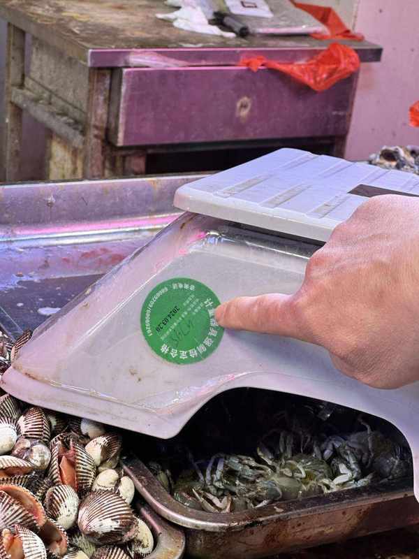 抽檢過程中記者註意到,海鮮攤主們配合度極高,甚至不需要語言交流。“習慣瞭,經常檢,流程我們都熟。”一位攤主樂呵呵地表示。