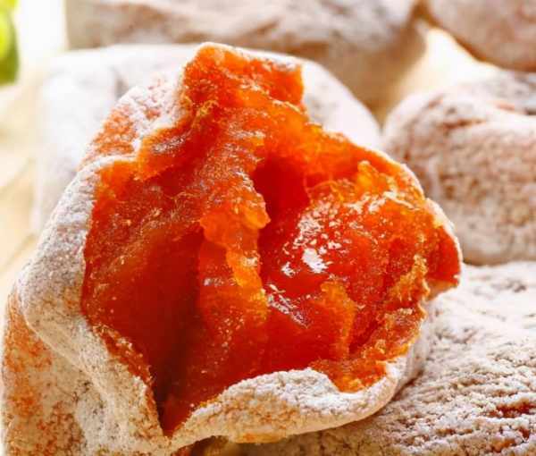 第1種柿餅,這個東西是8090後小時候經常吃得,特別是在農村每到秋天的時候柿子成熟,傢裡人會把柿子采摘下來制作成柿餅,黃澄澄的柿子進行風幹,表面會有一些天然的糖霜凝結,口感吃起來甜而不膩非常好吃。