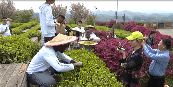 4月10日,“守護藍色星球·國際青年貴州行”參訪活動在貴州省遵義市開展,在華外籍網紅、外國留學生代表等走進湄潭縣興隆鎮龍鳳村田傢溝參觀,體驗采茶、炒茶等制茶工藝,並與當地農民學習瞭解茶文化。