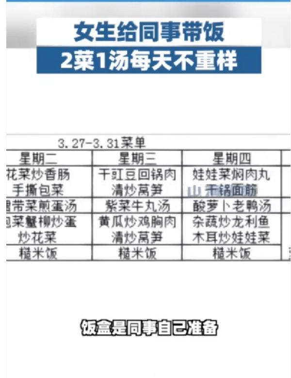 原標題:女生每天給同事做飯2菜1湯不重樣,每頓飯僅象征性的收15元
