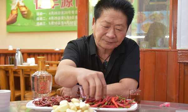 辣椒配白酒成瞭他每天生活的必需品,且每天能吃下5斤辣椒,普通人光是想想就齜牙咧嘴直皺眉瞭。