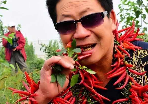 眼看著他吃瞭一個又一個,看上去很是過癮,周圍的人幾乎驚掉瞭下巴,他們想不到辣椒還能這樣吃,更何況這還不是普通的辣椒。