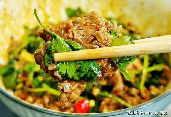 最後倒入料汁攪拌均勻,再放入香菜攪拌均勻,這道菜就做好瞭。