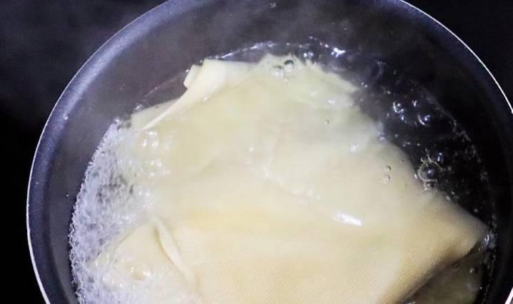 1、豆腐皮開水煮一下,放一點鹽和堿面