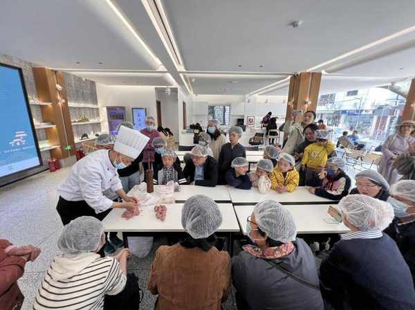 4月8日,稻香村傳統糕點制作技藝第五代傳承人徐紅生再次受邀參加“非一般的課堂”線下非遺體驗活動,與多個親子傢庭進行面對面交流,手把手地教現場的傢長與小朋友們制作稻香村的兩個爆款糕點——清水玫瑰餅與碧螺春茶酥。