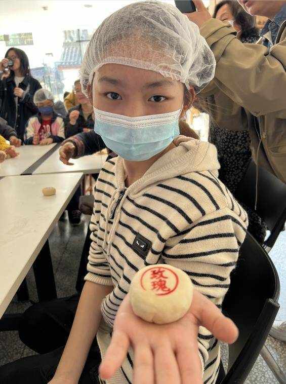 小朋友成就感滿滿地展示親手制作的清水玫瑰餅