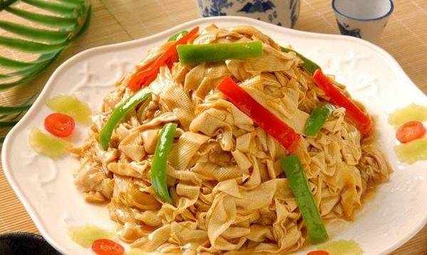 幹豆腐、青紅椒、豬肉、植物油、鹽、蔥、薑、大蒜、淀粉。