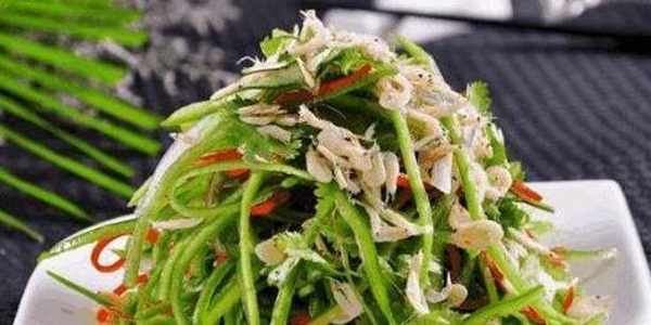 5、加入生抽,蒜末,蔥末,鹽,花椒油,味精,醋,白糖及辣椒油,香菜,拌勻裝盤即可。