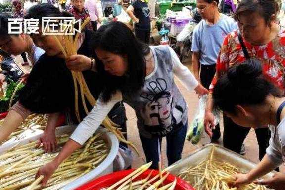熊大哥說,這些藕帶要是不挖出來,長大瞭就變成瞭荷葉或是荷花。現在藕帶剛剛上市不久,價格有些高,過段時間大量上市後,價格就會回落。圖為一個女孩在挑選藕帶。