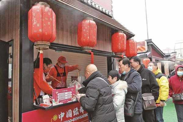 沙縣小吃攤位前排起瞭長隊。