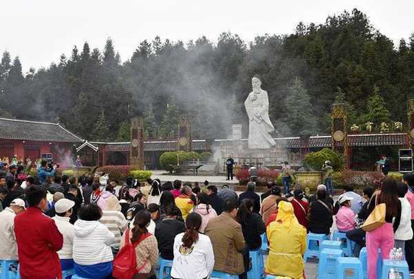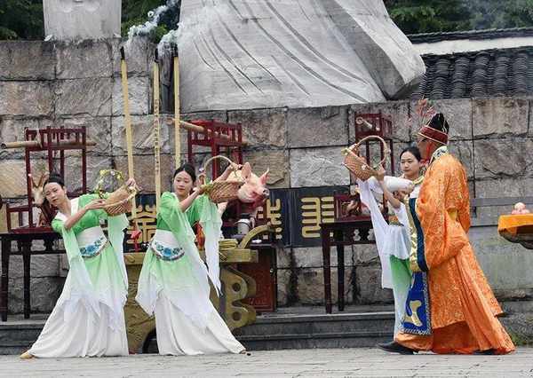 在古韻悠揚的樂曲聲中,禮生們抬上瞭豬、羊、雞、鴨等祭品,主祭師先後向茶神陸羽敬上高香,恭獻祭品,在主祭師與兩位副祭師念讀祭文紀念茶聖陸羽後,主祭師高舉茶枝沾水灑向茶籃,點化茶仙,茶農們手持香蠟紙燭,祭拜茶聖,鞭炮聲響徹茶聖廣場,用極具傳統民俗特色的祈福儀式,禮敬自然豐盈的饋贈。