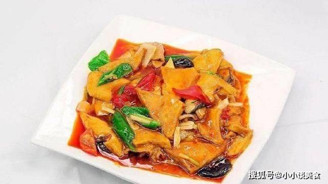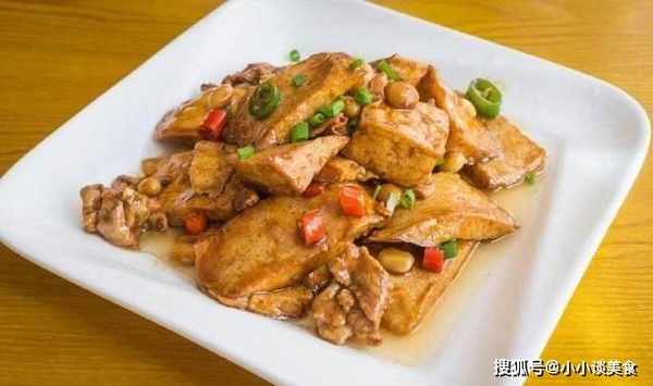 與傳統豆腐做法不同的是,這種傢常豆腐的做法是在豆腐表面撒上少許淀粉水,放入鍋中炸至外脆內軟。