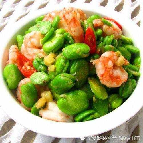 1. 將蝦肉洗幹凈後放入料酒,鹽,胡椒粉,雞蛋清,淀粉漿。鮮蠶豆下鍋廚熟後用冷水過涼。