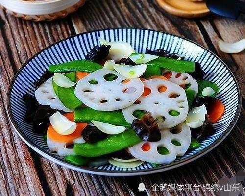 用料:藕1節、胡蘿卜小半根、荷蘭豆適量、木耳幹10顆、鹽適量、蒜1瓣