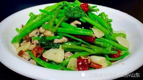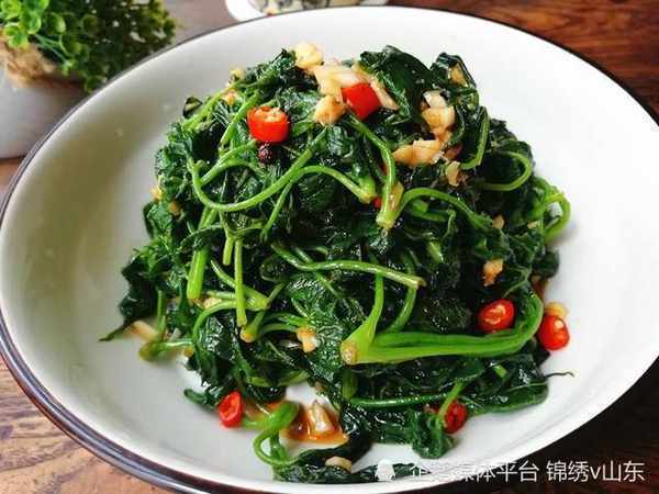 材料:刺五加嫩葉300克、油鹽適量、香油1湯匙、大蒜3瓣、幹辣椒5-6個、海鮮醬油1湯匙、白糖半湯匙、