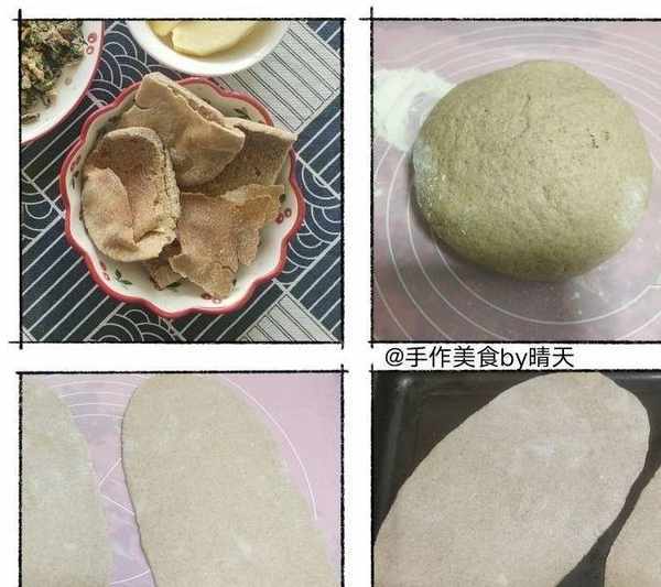 【全麥口袋餅】:面團這部分同做饅頭面包一樣揉面,發酵好之後,搟成大小隨喜的鞋底形狀,烤箱5分鐘至鼓起來這樣就空心,口袋餅做好瞭,在食用時對半切開,就變成兩個口袋,可以放入準備好的餡,或者不切,再煎一下做雞蛋灌餅。還可以不放餡撕碎直接吃。