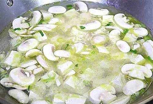 2、鍋中燒開水,放入豆腐稍煮,加入香菇稍煮,加入適量的鹽和蔥花出鍋。不要加雞精、味精之類的調料,因為這道湯很鮮。