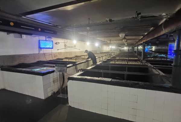 “這四口鍋是1903年工匠用紫銅打造的,大鍋投料管外壁佈滿坑窪的小窩。”薑衛說,早期沒電話的時候,樓上和樓下的工人為瞭方便通知對方投放原料或停止投料,會用鐵棒敲打投料管。時間久瞭,這些投料管上就留下許多“小酒窩”。