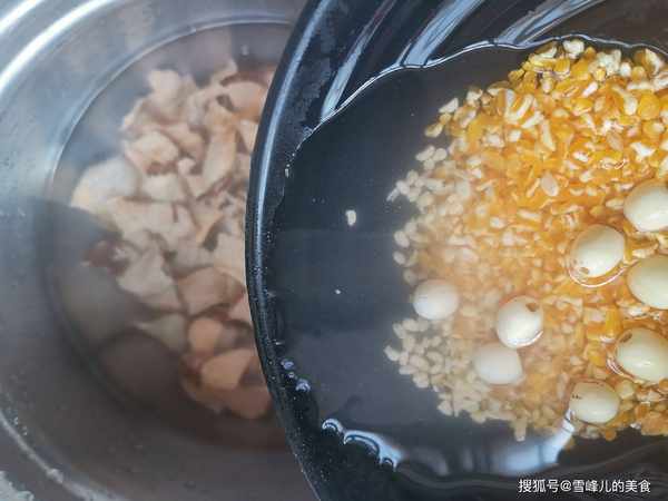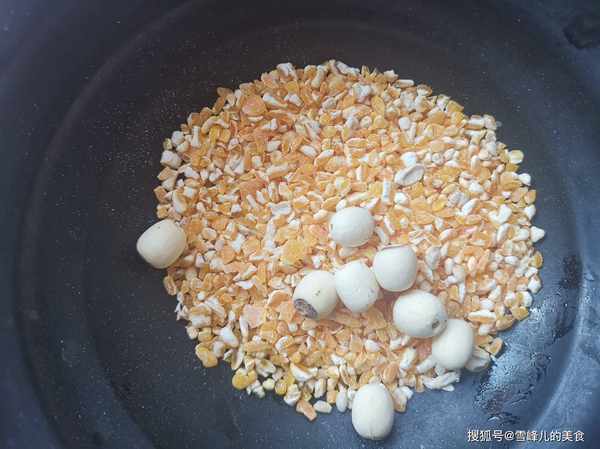 第二步:玉米碴子和蓮子。玉米碴子也就是玉米,玉米的營養價值比較高,含有維生素、膳食纖維以及碳水化合物、礦物質、蛋白質、油脂性物質以及甘油酸等,經常吃玉米可以降低膽固醇,明目減肥等等,尤其適合中老年人吃。