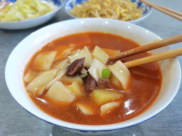 面片筋道,湯汁香濃,特別好吃的一碗揪面片。