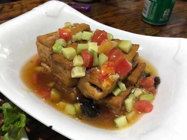 輕咬一口,皮韌餡嫩,豆腐和內餡兒的咸香完美融合,和外層掛的澆頭巧妙搭配,香而不膩,回味無窮……