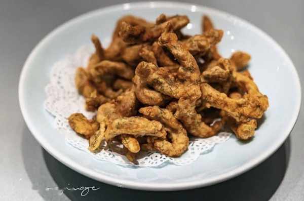 博山人最愛吃“硬炸肉”,豬裡脊塊用蔥薑醃好,掛上生粉雞蛋打成的稀面糊,下鍋炸,剛炸出來的肉鮮膩香脆,呈現金黃色,咬著咯咯作響,配上微麻的花椒面,香而不膩,咸香味美,回味無窮!