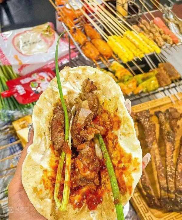 一口咬下去,五花肉的焦香,辣醬的蒜香,花生芝麻的堅果香,還有孜然、椒鹽的豐富味道在小蔥的助推下直沖味蕾,層次感分明,各種味道又融合的恰到好處。怪不得讓這麼多人吃上癮。