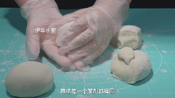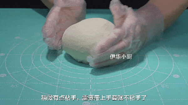 4:揉面時可以看得出來,這是一個偏軟的面團,稍微有點沾手,需要戴上手套就不沾手