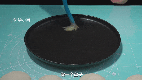 6、取一個盤子,盤子底部刷上食用油,擺入揉好的生坯,生坯的表面刷上薄薄的一層油,蓋上保鮮袋,放一旁醒面十分鐘