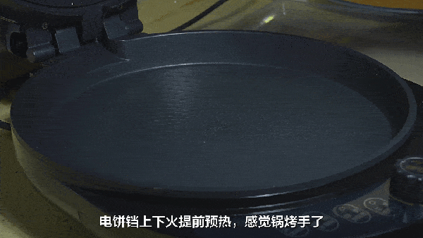 2:鍋溫要熱上來再烙餅,如果你的電餅鐺可以調整火力的話,建議選擇大火,用大火來烙餅的話,可以減少烙制的時間,保留餅內的水分,電餅鐺是有溫度控制的,所以不用擔心用大火會把餅烙糊