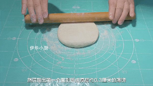 12、再取出第一個面積,搟成厚度約三厘米的薄餅