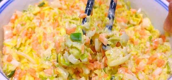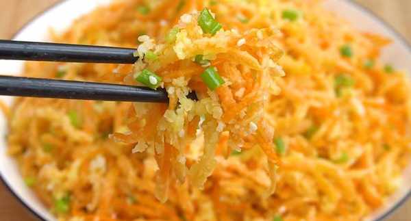 1、胡蘿卜洗凈以後用刮板擦成細絲,在裡面淋一些食用油,攪拌均勻,油可以鎖住胡蘿卜的水分,在蒸制的時候不容易出水,胡蘿卜絲也不會粘連在一塊。