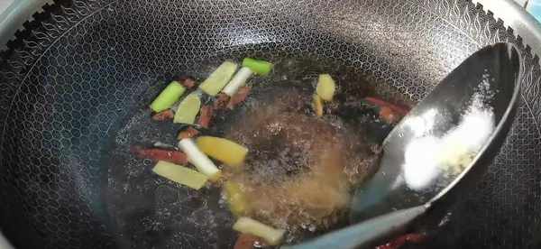 5、在鍋裡邊少留點底油,放入蔥薑跟大料,先給它炒香,炒香之後,再加入兩大勺清水,然後放入點甩不掉的蠔油,和少許的生抽提味,接著再放入適量的鹽,雞精,白糖,喜歡吃甜一點的,白糖可以多來一點。