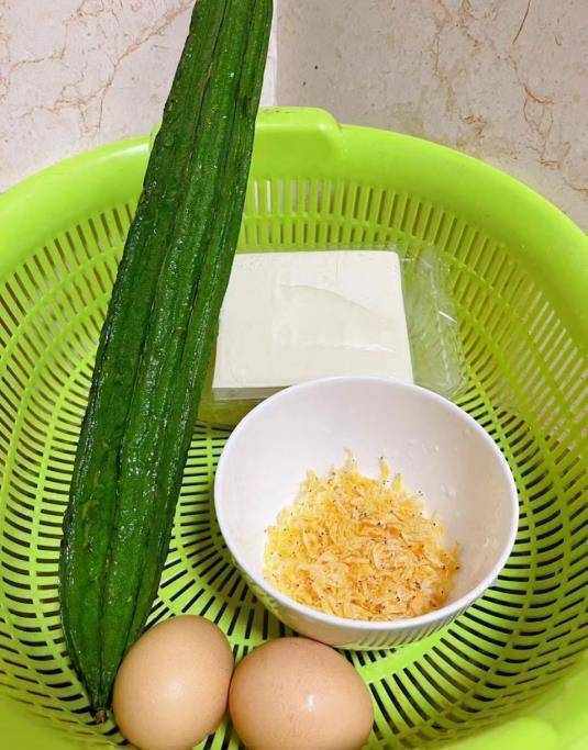 選購食材清單:選購有棱絲瓜一條(絲瓜是高維生素C的菜瓜,尤其是年輕人可以多吃它,為肌膚補充水分,還可以清熱解毒,降肝火,補水嫩膚,越來越年輕),小蝦米60克,嫩豆腐250克左右,雞蛋幾枚,少許冷水,溫開水少許,食鹽適量,少許食用油,兩片生薑,3瓣大蒜頭,半勺雞精,半勺味極鮮,食鹽少許,新鮮小蔥若幹根,一丟丟胡椒粉,其他調味品。