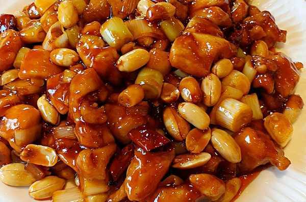 1、將雞肉切成小塊,用料酒、鹽和淀粉醃制10分鐘;