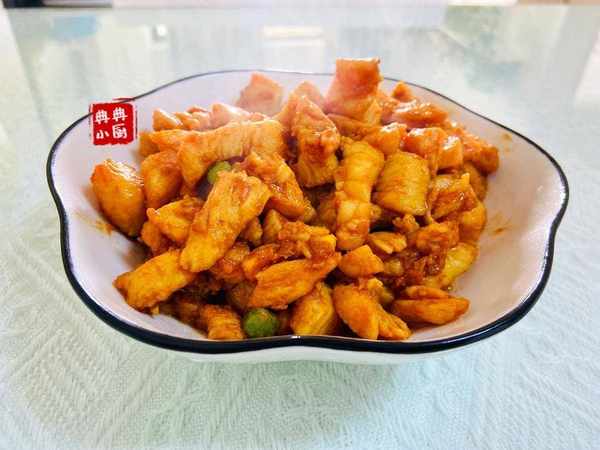半成品還是挺方便的,但我買的次數少,因為小朋友口味似乎不是大眾型的,一般這種半成品做出來她都不是很愛吃,比如酸菜魚之類的。起油鍋把宮保雞丁倒進去,大火快炒,炒至雞塊變色,加一點生抽,再次炒均勻之後就可以出鍋瞭。正常口味這樣就可以瞭,我傢的孩子,需要我另外加一點點老抽,還有一丟丟鹽,要不她就會覺得沒有什麼食欲。