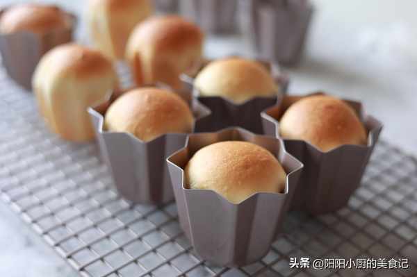 在傢最常做的一款面包,一次發酵,蓬松柔軟,省事又好吃。可以用模具制作,也可以直接做成圓形小餐包。