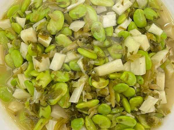 食材準備:雪菜、毛豆、茭白、蒜末。