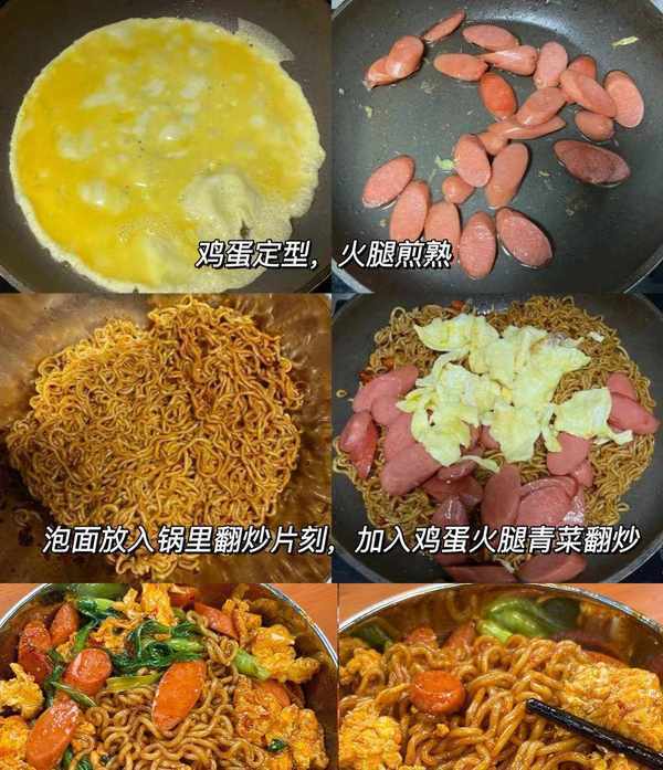 制作炒面的步驟也十分簡單,首先將泡面煮熟,過涼水瀝幹,然後加入適量的調料拌勻,這樣可以讓泡面更加美味。接著炒雞蛋和火腿腸,放入青菜翻炒片刻,最後倒入泡面翻炒均勻,就可以出鍋啦!這道菜品不僅簡單易學,而且方便快捷,適合忙碌的上班族、學生和傢庭主婦。