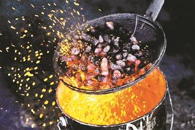 在淄博,燒烤爐子、小餅、小蔥,被稱為燒烤的靈魂三件套,也是其招牌特色。常規的燒烤,都是將串烤好後端上桌,上桌即食。淄博燒烤上桌的肉串則是烤到六七分熟,食客通過獨立的小烤爐自己掌握火候。這個小爐子又分為上下兩層,下面那一層可以用來加熱和烤制,而上面的那層則可以用來保溫。爐槽也有講究,除瞭炭槽之外,還設計瞭水槽,用來接住烤串兒滴落的油脂,實現無煙燒烤。