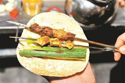 “淄”味很重要,北京青年報記者的鄰座小孟示范說:要提前將發面小餅對折,折痕處蘸好醬、芝麻鹽、辣椒面,然後掌心攤上小餅,守著小爐子,肉串在上面烤得嗞嗞冒響,火候到瞭,趁熱“擼”進小餅裡,新鮮的小蔥整段包裹進去,一口下去,碳水的快樂、烤肉的滿足、小蔥的清新就都有瞭……
